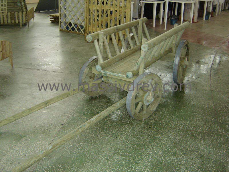 Когда-то телега была незаменимым помощником в хозяйстве и основным видом транспорта в сельской местности. В наше время деревянная телега выполняет, в основном, декоративные функции и используется как элемент декора в ландшафтном дизайне загородного участка, сада, прилегающей территории кафе или ресторана.