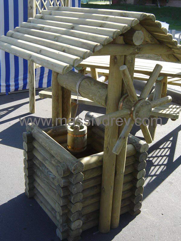 В основном, колодец декоративный используется как элемент ландшафтного дизайна в саду, на даче, на приусадебном участке. Также малые архитектурные формы из дерева помогают скрыть скважины, канализационные люки, очистные сооружения и другие неприглядные места на газонах, клумбах и декорируемых территориях.
