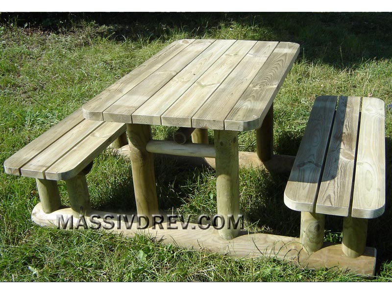 Стол с присоединенными скамьями